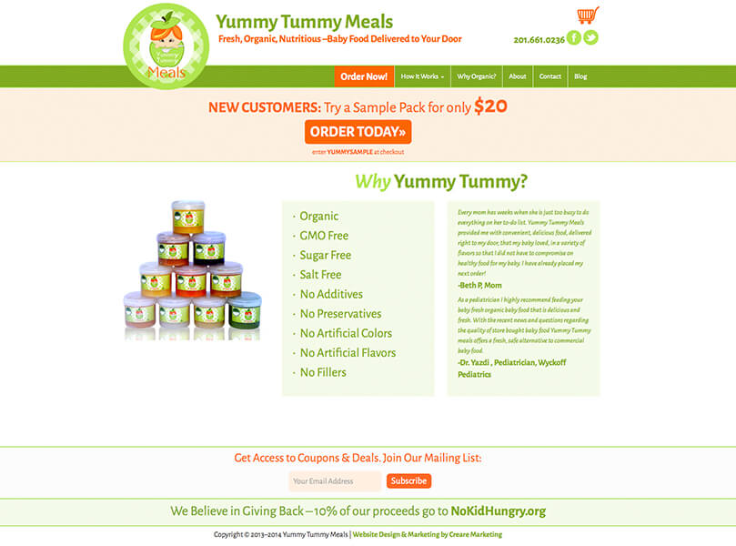 We’ve been working with Yummy Tummy Meals for a while now, and are so so excited to announce that their brand new website is now live!! Yummy Tummy cooks AND delivers fresh, delicious homemade baby food to your door anywhere in Bergen County!