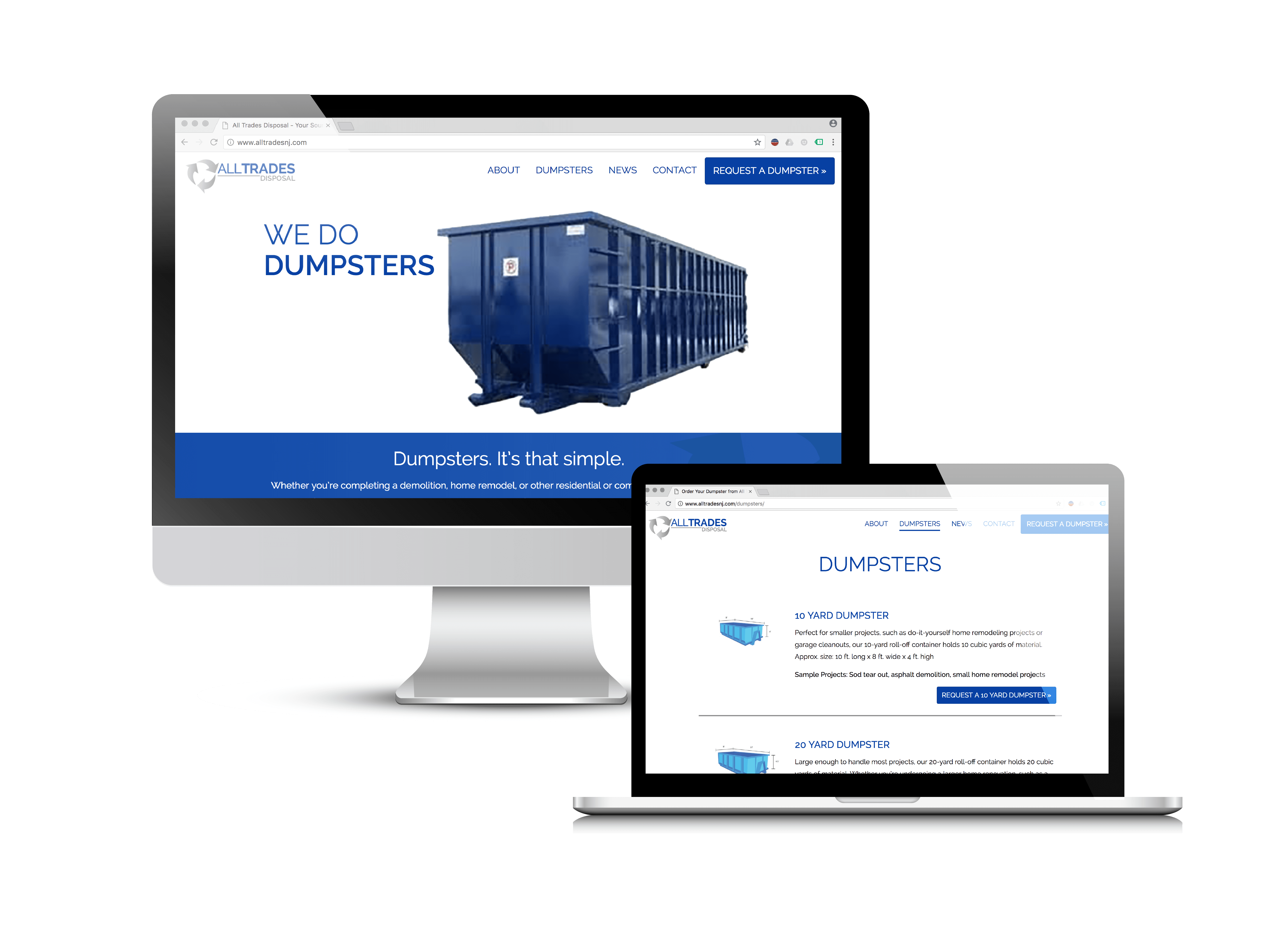 All Trades Disposal came to us to build a modern website that made it easy for users to request a dumpster pick-up as well as a dumpster removal.