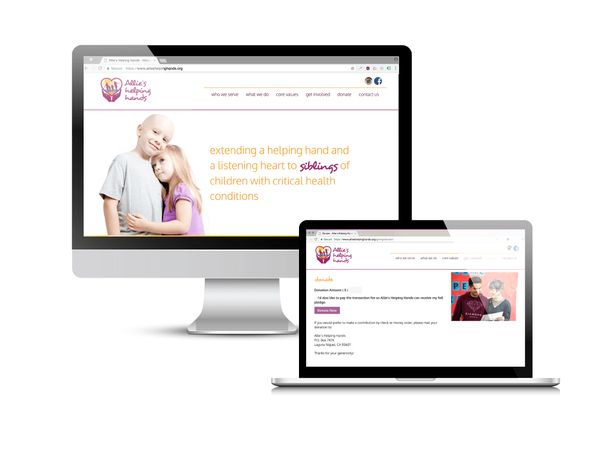 Allie’s Helping Hands is a nonprofit that provides activities, homework help, and fun for siblings of children who are hospitalized with critical illnesses—children who spend much of their lives in the hospital visiting their sick brother or sister. Kristen Lock Spalding, the founder of Allie’s Helping Hands, approached Creare Web Solutions in 2014 to create a website to share the organization’s mission, tell its story, and spread the word about its programs. One important goal of the website was to raise additional funding for the nonprofit.