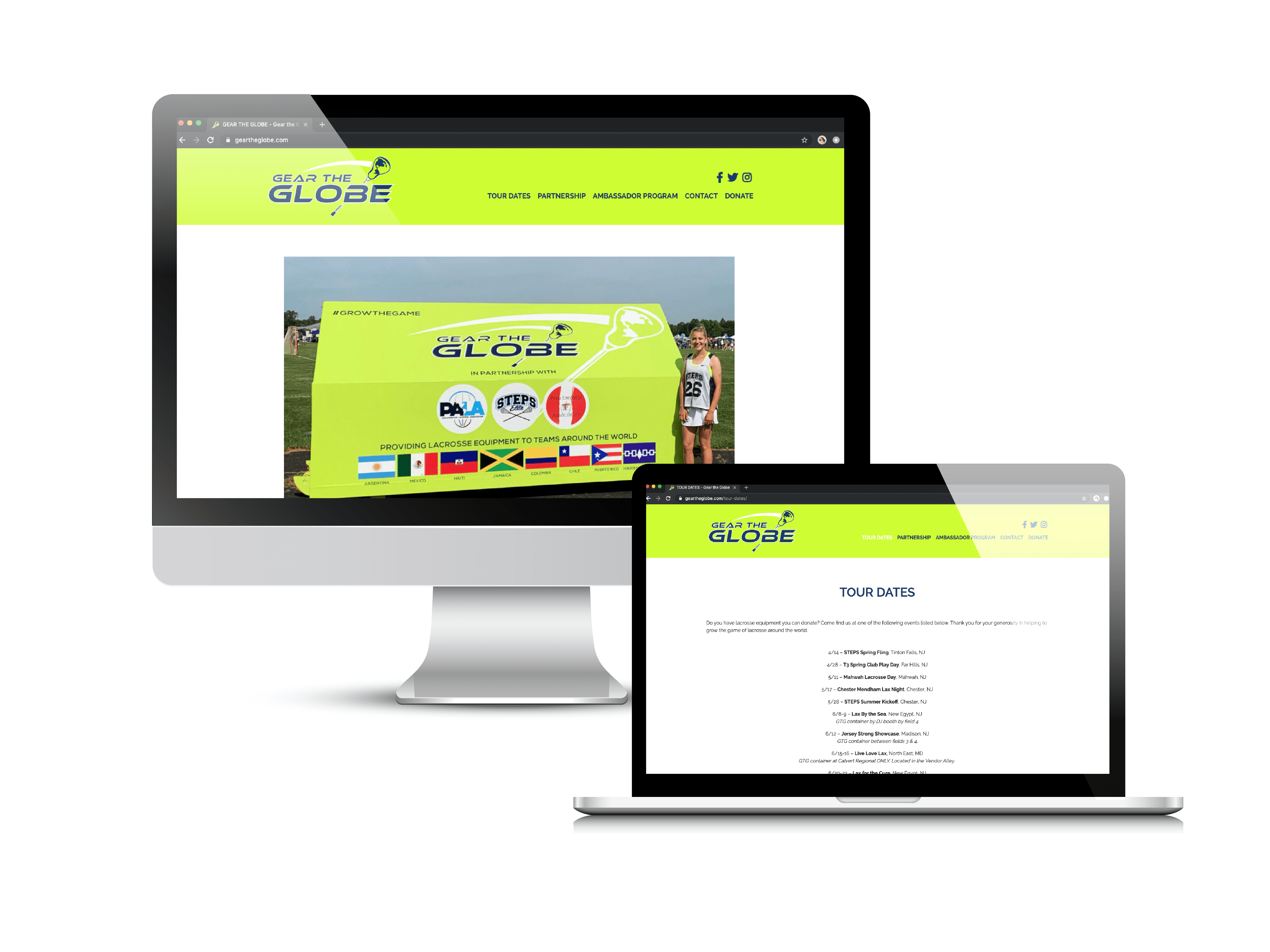 Gear the Globe is a non-profit that was started in January 2019 by Sam Cardella, a high school student (and one of my long-time client’s daughters). She is a lacrosse player and had an idea to collect used lacrosse equipment at different lacrosse tournaments throughout NJ and the east coast and then ship them to countries who are trying to develop their female lacrosse teams. Initially Gear the Globe contacted us to help them with their branding which included designing a wrap for the collection/shipping container they would be using as well as flyers, t-shirts and various other marketing materials. We worked with the wrap company to get the right colors printed (neon/lime green is not an easy color!), ensure that the placement of everything was appropriate based on the shape and contours of the container. Then we rebuilt and modified the design of the GoDaddy website that Sam had initially set-up to ensure it looked more professional and was more search engine friendly for the news outlets that were reaching out to her.