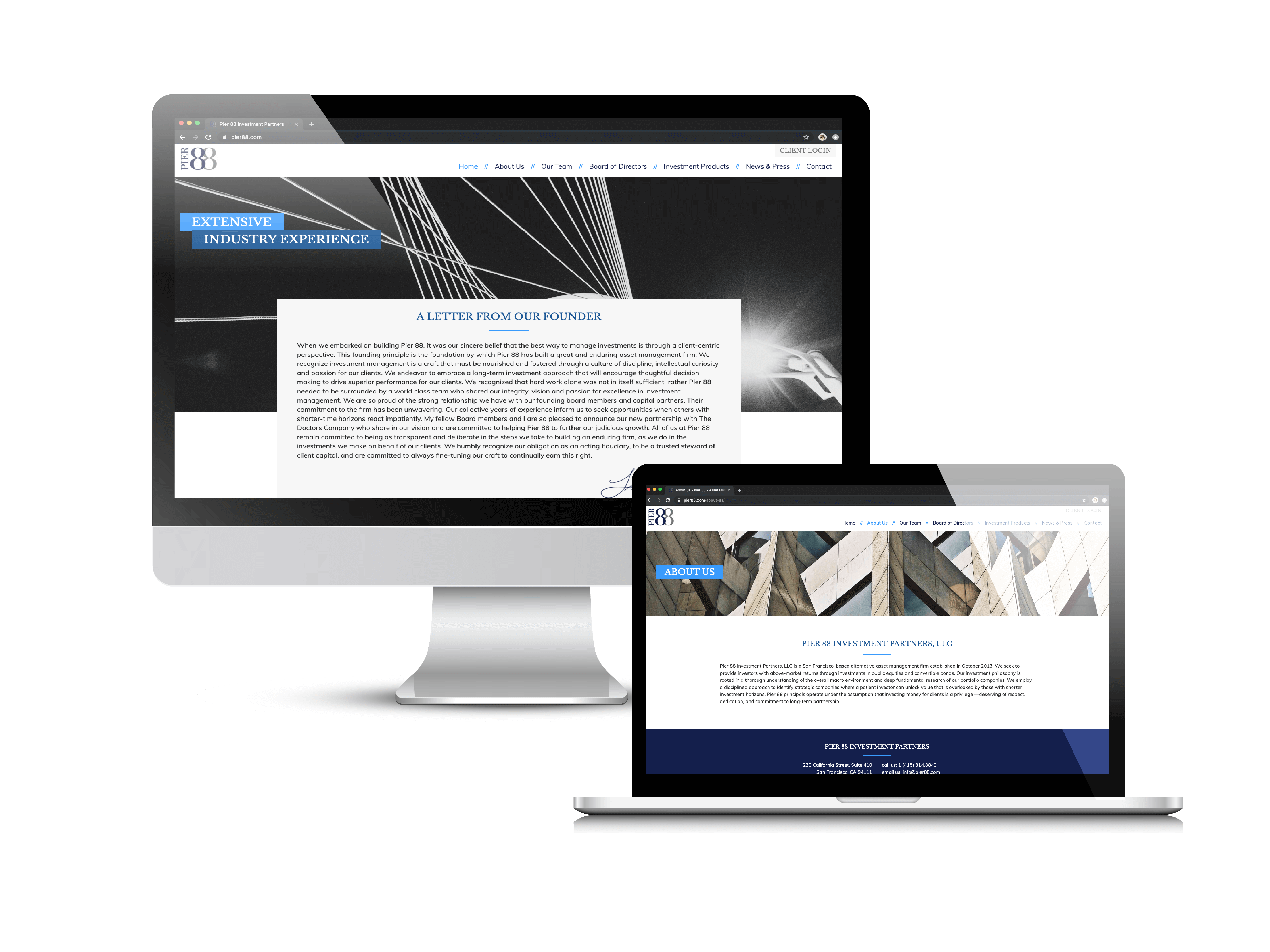 Pier 88 Investment Partners is a San Francisco-based asset management firm established in October 2013. Their mission is to provide investors with above-market returns through investments in public equities and convertible bonds. They came to us to help them revamp their website. They had one which looked alright, however no one at the firm was able to log into the back-end and edit it. There were also issues with how it displayed on mobile devices, and how it was tagged in the back-end to be searched.